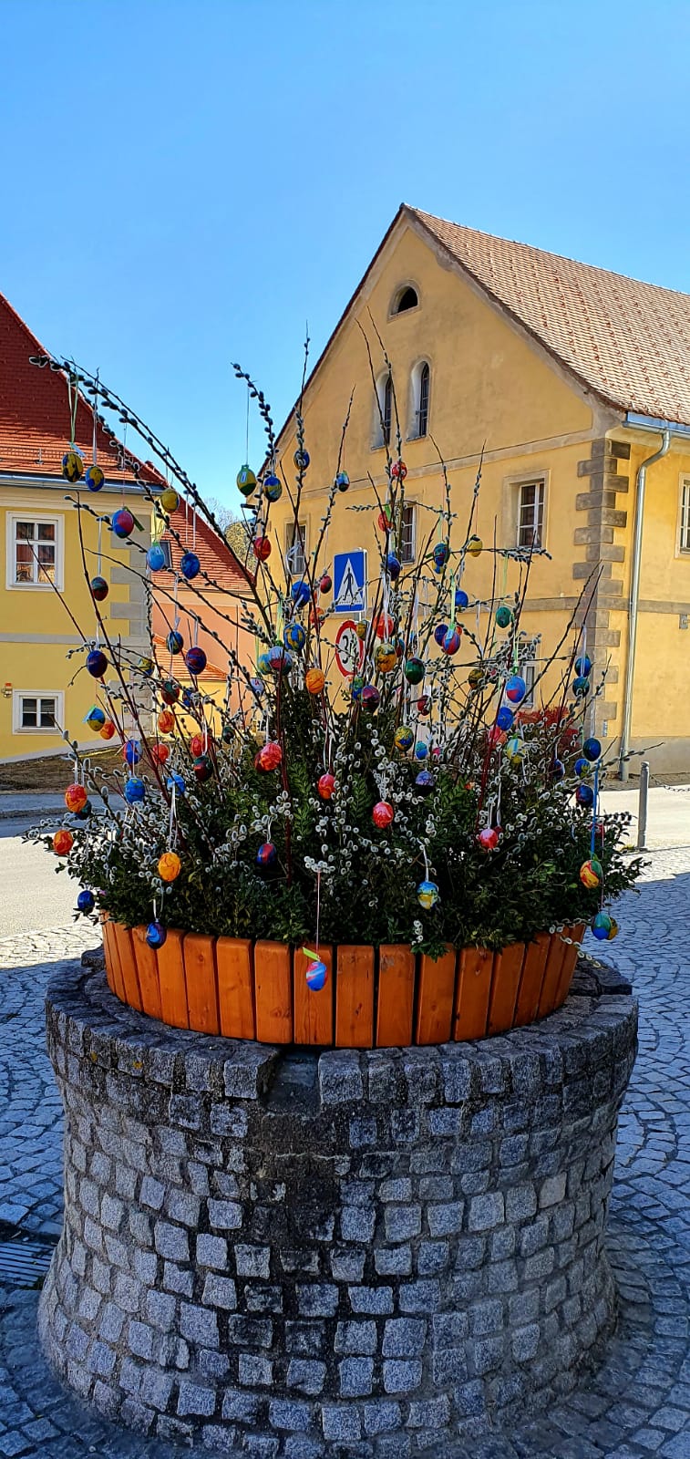 Die Ostereier wurden von den Kindern des Kindergartens und der Volksschule Seckau bunt bemalen und verziert. Die Damen der Frauenbewegung schmückten den Brunnen vor dem Gemeindeamt liebevoll und bringen somit einen schönen bunten österlichen Gruß an alle Besucher in Seckau.